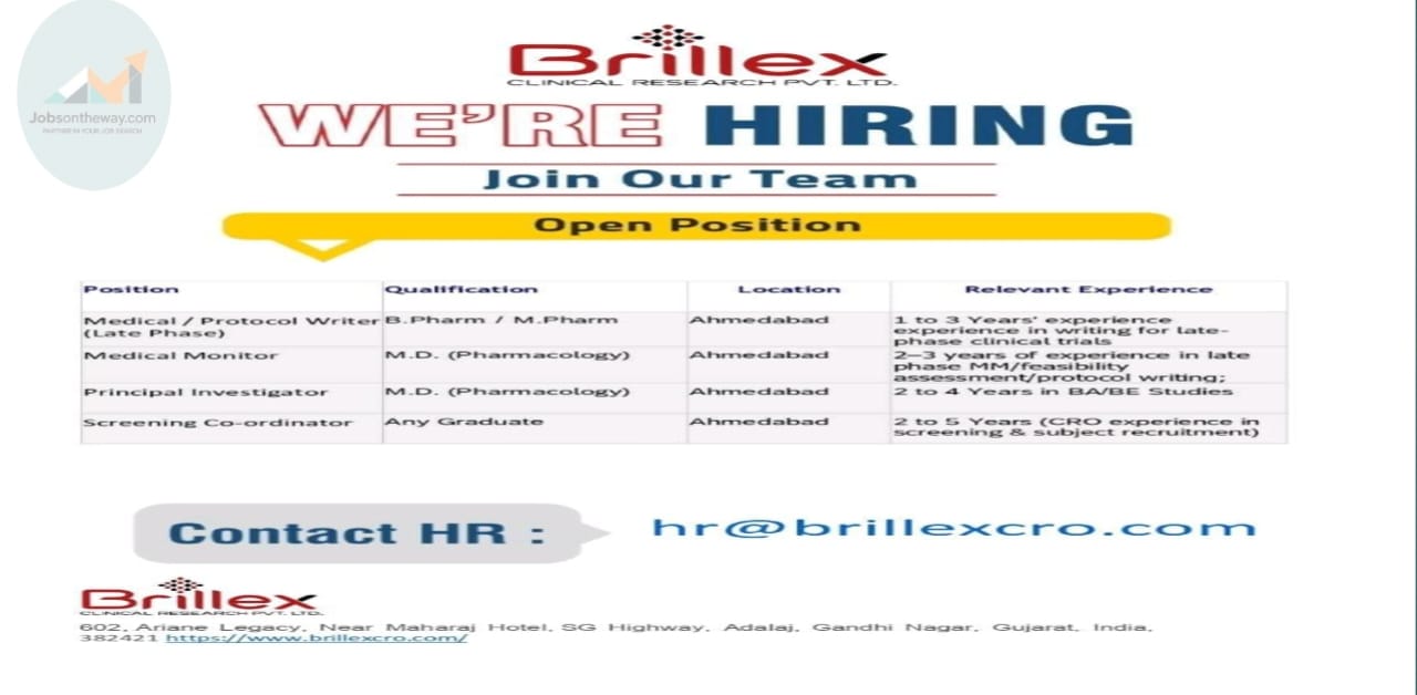 Join Brillex Clinical Research Pvt. Ltd. as a Medical Writer, Medical Monitor, Principal Investigator, or Screening Coordinator 🌟